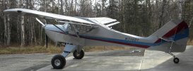 Here are some pictures of my baby; about 4 years in the building process. It has a 100 hp Subaru EA81 Stratus motor and redrive, MGL avionics flight and engine monitoring instruments, raised skylight, extended baggage, lengthened heavy duty gear, 28 gal fuel capacity and is in the light sport category. Cruise at 80 mph burns 2.8 gph of mogas on the fuel flow meter. I have really been enjoying flying it and have 10.5 hours on it now. I just got my skis rigged and on it last weekend but didn't get a chance to fly it. In these pics it has 21" tires on it but will put my 26" Alaska Bushwheels on it in the spring.